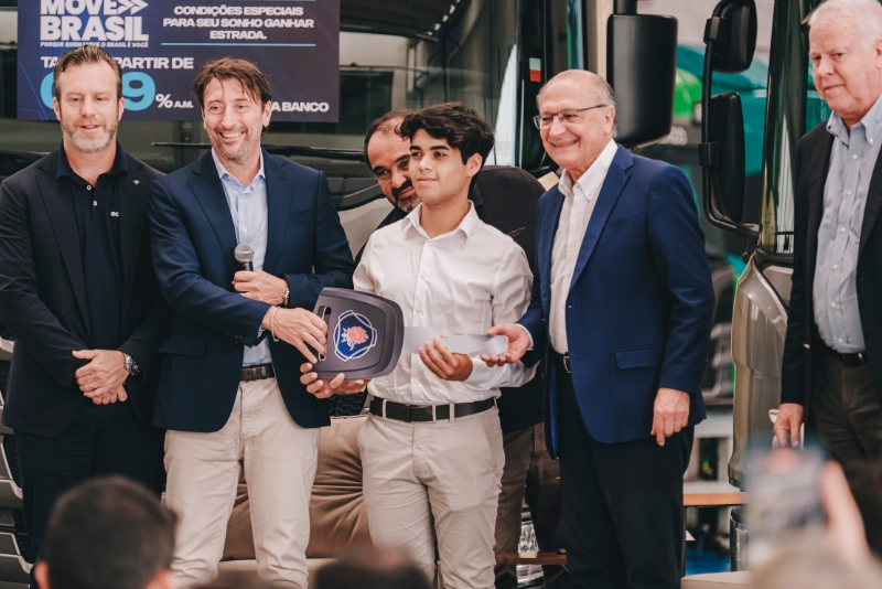 Boaventura Transportes recebe a chave simbólica da entrega do Scania P