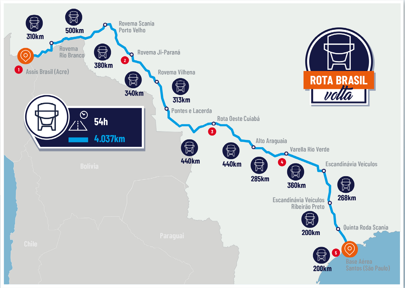 Os veículos deixaram a fábrica para fazer uma viagem por quatro países da América Latina – Brasil, Argentina, Chile