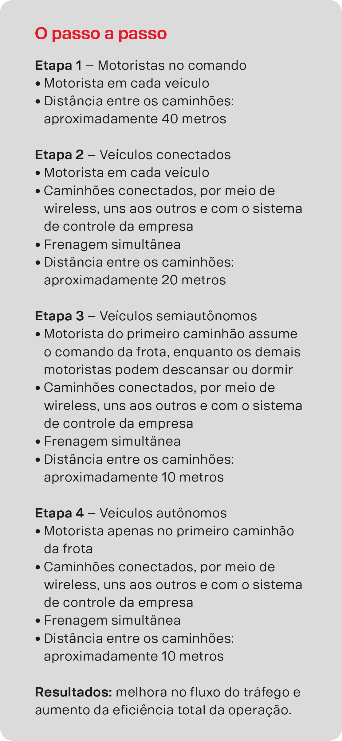 do caminhão, podem descansar. Na quarta etapa, apenas