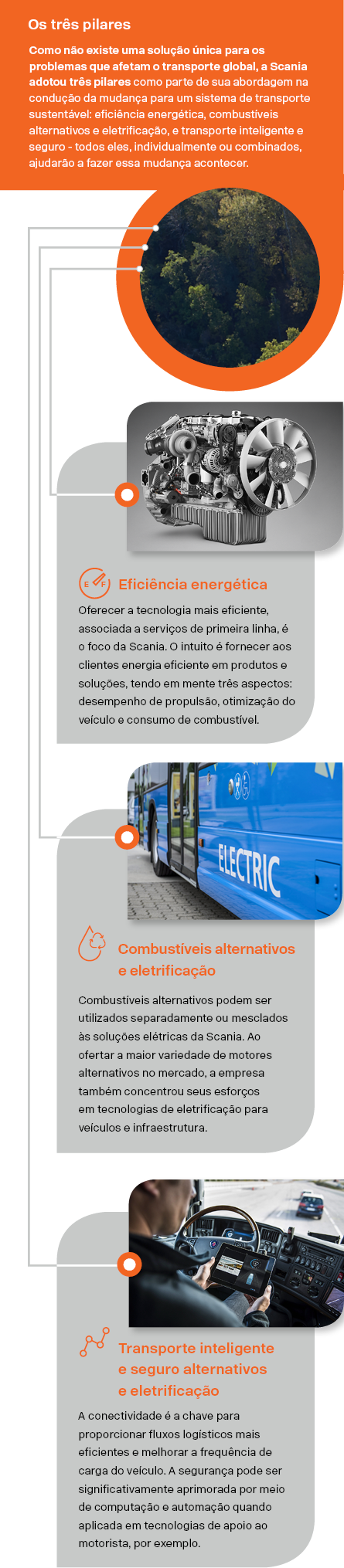 três pilares fundamentais: eficiência energética, combustíveis alternativos e direção segura e inteligente. Essa é a base de um sistema conectado,