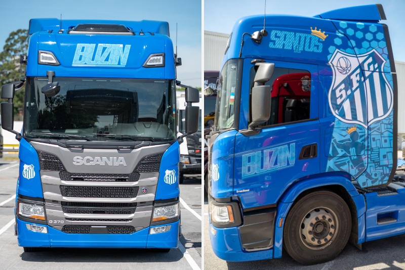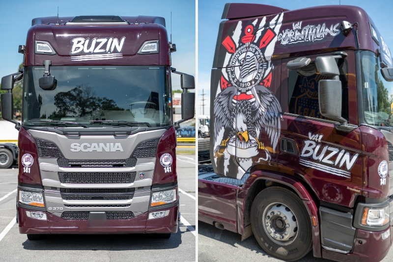 Os novos Scania G 370 da Buzin estão sendo entregues com personalizações que levam a paixão pelo futebol para a estrada