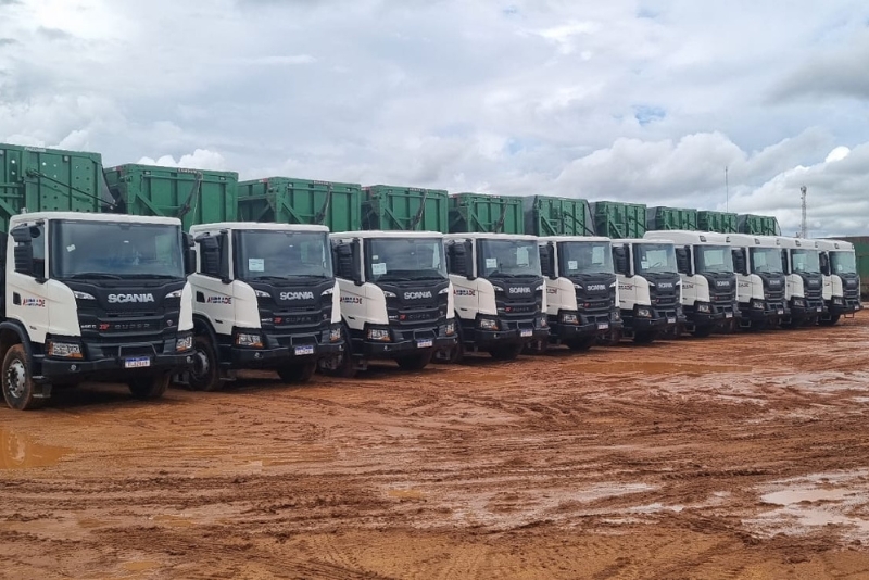 caminhões Scania Super e mais 70 conjuntos de carretas para executar o transporte de cana picada da lavoura
