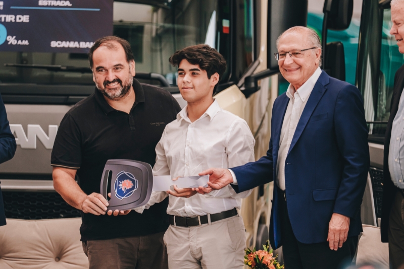 Boaventura Transportes recebe a chave simbólica da entrega do Scania P